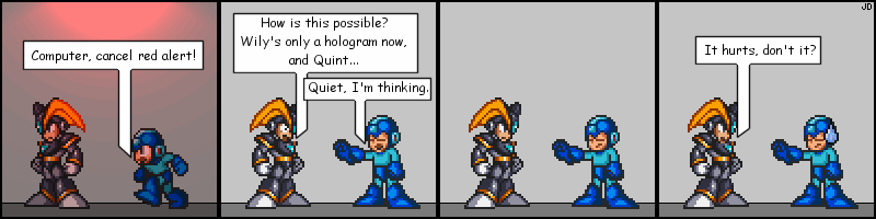 EVERYBODY has to do the "Mega Man is an idiot" joke.