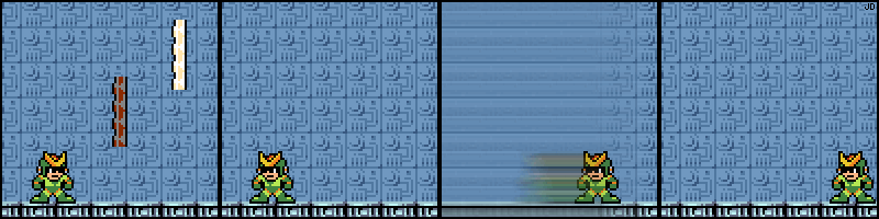 Sure it's just the camera moving. I'd bet Quint was based off of Quick Man and not Mega Man.